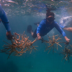 Das Team von Fragments of Hope hat zusammen mit der örtlichen Gemeinde mehr als 10 Jahre damit verbracht, zahlreiche Korallenfragmente zu pflanzen, um das Riff neu zu beleben. Dazu wurden Fischer*innen, Taucher*innen und Schnorchler*innen darin geschult, die Korallen zu „pflanzen“.