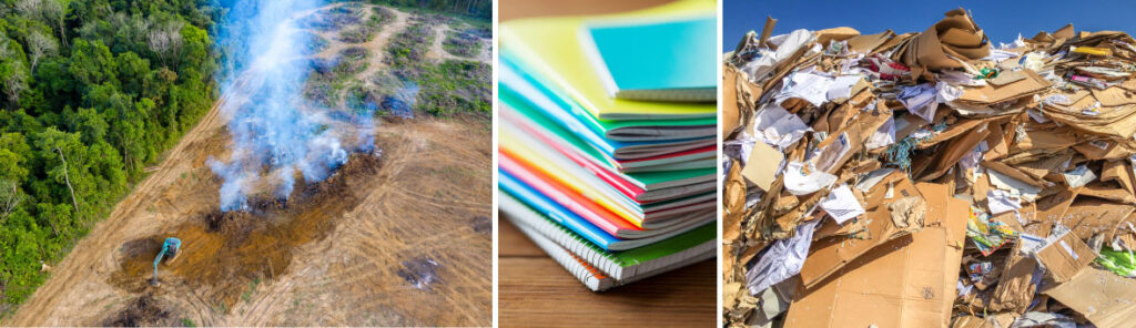 Da es sich bei Deiner Schule um eine städtische Einrichtung handelt, liegt die Entscheidung über Materialbeschaffung nicht nur bei der Schule allein. Du stellst fest, dass weder Schüler*innen noch Lehrer*innen sich besonders viele Gedanken dazu gemacht haben. Papier wird sehr viel und oft gedankenlos verbraucht.